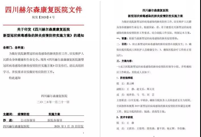 医院积极响应成都市卫健委、武侯区卫健局和四川省医院协会社会办医分会关于医、技、护自愿者的招募,四川赫尔森康复医院从高年资的副主任医师、副主任护师到青年的医护骨干纷纷志愿报名,目前已有医生 4 人、护士 2 人主动请战。我们不希望灾难的降临,但也绝不惧怕它的到来!赫尔森人不畏困难,勇往直前,充分展示出了“有德、有术、有情、有义”的医务工作者形象。保卫生命,抗击疫情,这是我们的决心,也是我们的信心。