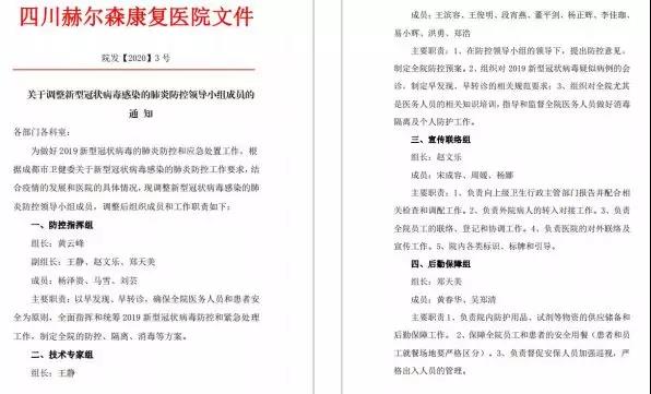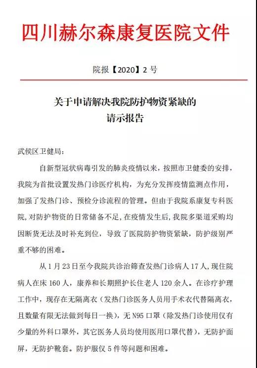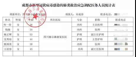 医院积极响应成都市卫健委、武侯区卫健局和四川省医院协会社会办医分会关于医、技、护自愿者的招募,四川赫尔森康复医院医生 4 人、护士 2 人主动请战。